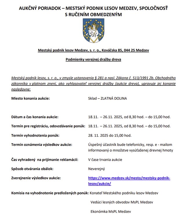 | Web : | Mestský podnik lesov Medzev, s. r. o. Ko |